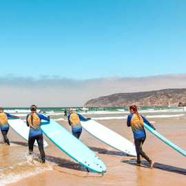Zanurz się w prawdziwej atmosferze surfingu, tuż pod Lizboną! Nie przejmuj się chłodniejszą wodą – nasze wysokiej jakości kombinezony zapewnią komfort przez cały rok.