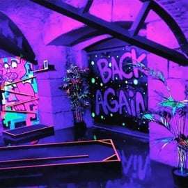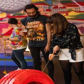 Nowe i ekskluzywne doświadczenie w minigolfie w Lizbonie. Dołącz do nas na naszym 18-dołkowym polu, które jest oświetlone zarówno światłem naturalnym, jak i neonowym światłem UV i jest pełne wyzwań, zwrotów akcji, obiecując mnóstwo zabawy dla wszystkich. Możesz także wziąć udział w rywalizacji na naszych stołach bilardowych, stołach do piłki nożnej i cymbergaja lub po prostu usiąść i zrelaksować się w naszym wspaniałym barze i nie martwić się o pogodę, gdy jesteśmy w pomieszczeniu, więc chronimy Cię przed deszczem lub blaskiem. Więc niezależnie od tego, czy szukasz wieczoru z przyjaciółmi, nietypowej randki, czy popołudnia zabawy z dziećmi, jest to idealny wybór