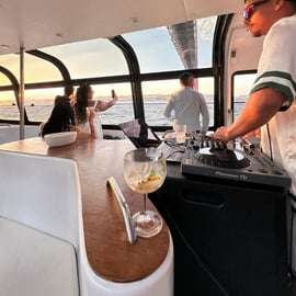 Wyrusz w elektryzującą podróż na pokładzie naszej ekskluzywnej i luksusowej łodzi, gdzie zachód słońca staje się sceną niezapomnianej imprezy! Dzięki DJ-owi na żywo, energicznym rytmom i zapierającym dech w piersiach widokom na Lizbonę, ten rejs to idealne połączenie zabawy, muzyki i spektakularnych panoram. (Uwaga: tylko świąteczny rejs luksusowy o zachodzie słońca trwa 3 godziny).