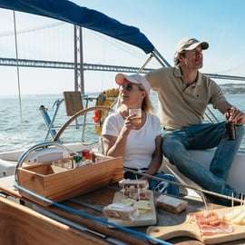 Wypłyń w niezapomniany rejs żaglówką po wodach Tagu! Podczas rejsu podziwiaj malownicze widoki na ikoniczne zabytki Lizbony, m.in. historyczny Plac Handlowy, majestatyczną Statuę Chrystusa Króla, nowoczesny Most 25 Kwietnia oraz uroczą Wieżę Belém. To doskonała okazja, by poznać Lizbonę z zupełnie innej, niepowtarzalnej perspektywy!