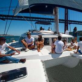 Wskakuj na pokład luksusowego katamaranu w Lizbonie, stworzonego dla kameralnych grup do 18 osób, gdzie każdy szczegół został dopracowany, aby zapewnić komfort i odkrywanie.