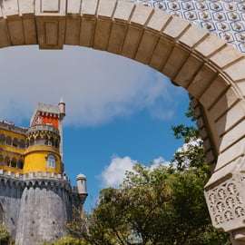 Po lunchu udaj się do klejnotu Sintry: pałacu Pena. Zbudowany w XIX wieku przez króla Ferdynanda II na ruinach dawnego klasztoru, pałac jest arcydziełem architektury romantycznej. Jego jasne kolory, eklektyczna mieszanka elementów mauretańskich, gotyckich i renesansowych oraz panoramiczne widoki na wzgórza Sintry sprawiają, że jest to jeden z najbardziej charakterystycznych zabytków Portugalii. W cenie biletu wstępu i zwiedzanie z przewodnikiem, podczas którego odkryjesz królewskie apartamenty, bogato zdobione wnętrza i tarasy odzwierciedlające wyobraźnię króla-artysty.