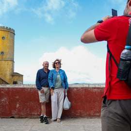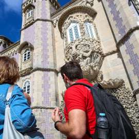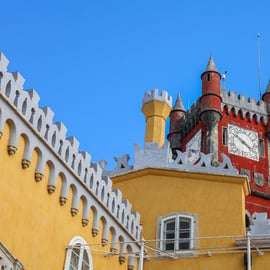 Zwiedź bujne ogrody i podziwiaj eklektyczną, kolorową fasadę tego kultowego pałacu położonego na szczycie wzgórz Sintry.