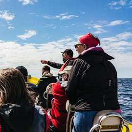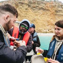 Spotkaj się z nami w porcie w Sesimbrze lub skorzystaj z wygodnego transportu z centrum Lizbony. Nasza przygoda rozpocznie się na stabilnej, półsztywnej łodzi, która bezpiecznie poprowadzi Cię po spokojnych wodach Atlantyku.