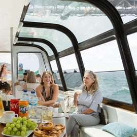 Pogoda nigdy nie stanowi problemu, ponieważ nasz statek można całkowicie zamknąć w szkle, aby zapewnić maksymalny komfort przy zachowaniu panoramicznych widoków, dzięki czemu doświadczenie może przebiegać płynnie w deszczu lub słońcu. Wstęp do portu jest dozwolony tylko w towarzystwie naszego pracownika. Pamiętaj, że jeśli nie zgromadzi się minimum 10 uczestników, wycieczka może odbyć się mniejszą łodzią. Poinformujemy Cię o tym z wyprzedzeniem.