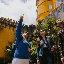 Następnie, z biletami w ręku, wejdź do bajkowego Pałacu Pena! Romantyczna architektura, łącząca gotyk, styl neomanueliński, neoislamski i neorenesansowy, zostawi Cię bez tchu. Zwiedzaj bogato zdobione komnaty, spaceruj po malowniczych dziedzińcach i ogrodach, podziwiając niesamowite widoki na zamek i Ocean Atlantycki. Park pałacowy, z jego różnorodnością roślinności, dopełni niezapomnianych wrażeń.