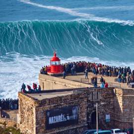 Latarnię morską Nazaré, kultowy punkt oferujący uprzywilejowany widok na gigantyczne fale.